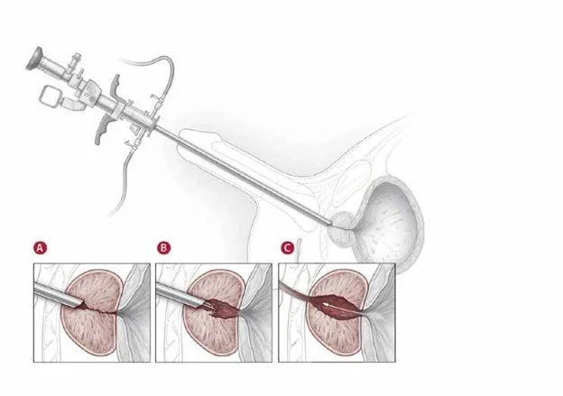 This is the most common treatment for benign prostate enlargement. Treatment occurs by coring the urethra inside the prostate out, in order to make the passage of urine flow easier.